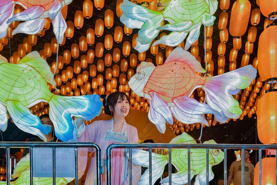 临近中秋节日,传统文化氛围渐浓,安徽省合肥市的各大商业广场举办灯会、猜谜、汉服等活动,吸引市民参与体验。