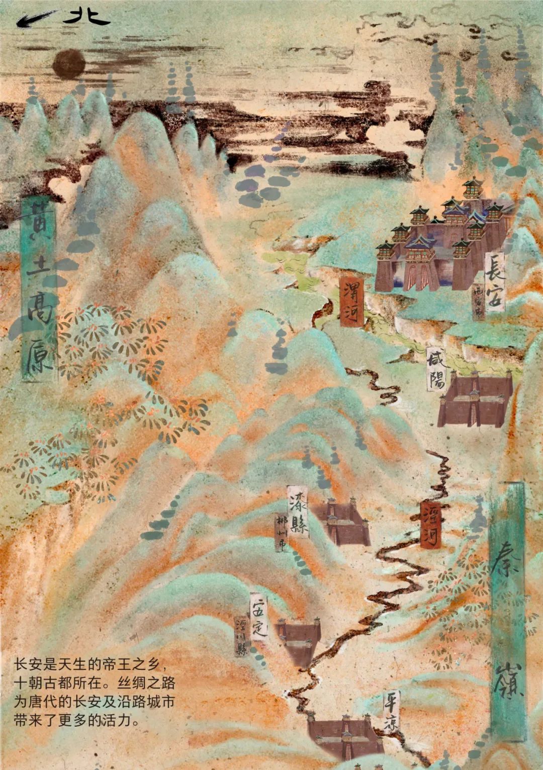 为了能以地图的形式来展现敦煌的特色,我们从连接敦煌的众多路线里面选择了三条最有特色的线路,并绘制出以敦煌为中枢的丝路长篇地图。这三条线路分别为,希望能从视觉上凸显敦煌的地位。