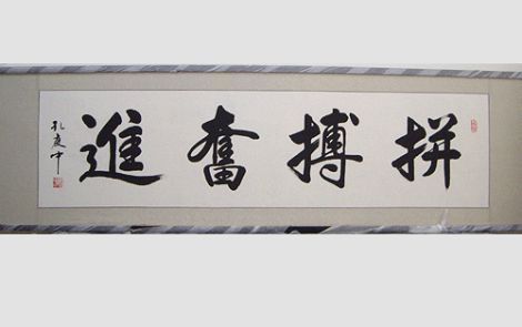 孔庆中先生青年时期专习柳公权欧阳询碑贴,书技大有进展。并得到省内外广大书法爱好者的认可和赞誉。以后又在楷书的基础上认真临习行草,初师法二王(王曦之、王默之),后又临习宋高宗《千字文》和赵孟頫 《洛神赋》、《万寿曲》。退休后对书法的爱好达到痴迷的程度。2000年后转为专业书法家,后两年又兼攻隶书,师从 《曹全碑》和当代书法大师刘炳森,在实践中融会贯通,逐渐形成自己的风格:含蓄秀逸,大气磅礴,作品多次参赛获奖,并被广大书法爱好者收藏。先后被《中国新闻社》、《光明日报》、《中华收藏》、《书法家》、《新闻爱好者》、《魅力中国》、《河南日报》、《青年导报》、《中州金古》、等新闻媒体多次报道。